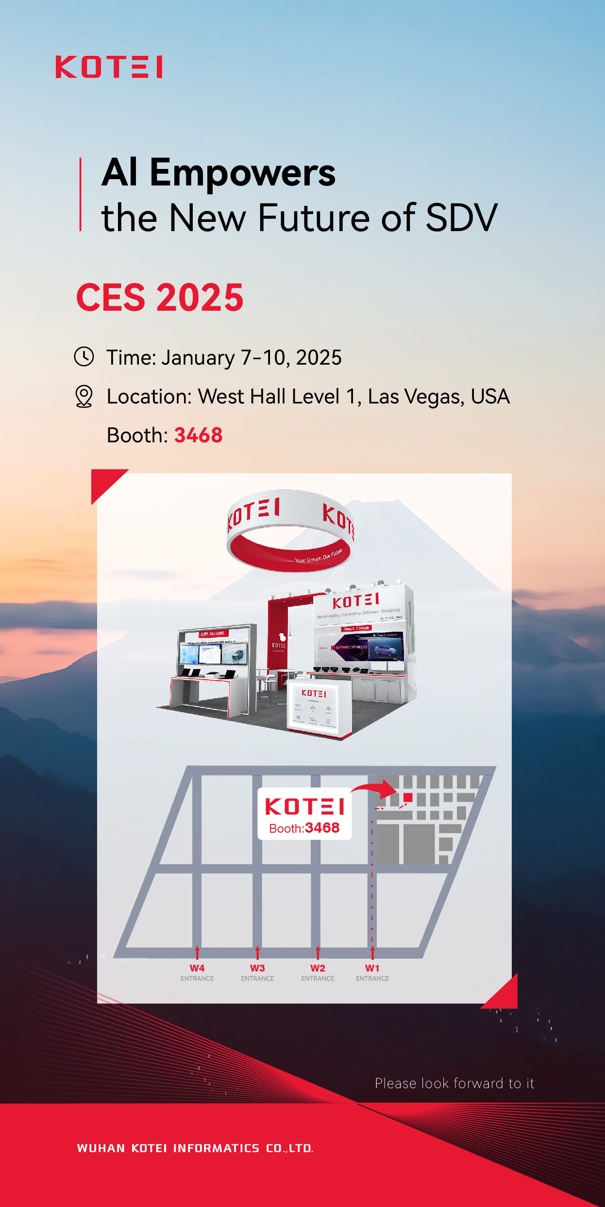 Las Vegas, January 7, 2025 – CES 2025 is set to ignite the global stage with groundbreaking technological showcases, and KOTEI is poised to shine as a leader in automotive digital transformation. Renowned for driving the "software-defined vehicle" revolution, KOTEI will present its flagship solutions, including SDW 2.0, UE For Automotive (UEA), and Digital Car Simulation Solutions. These innovations underscore KOTEI's commitment to advancing intelligent connected vehicle technologies under the theme "AI Empowers a New Future of Software-Defined Vehicles"